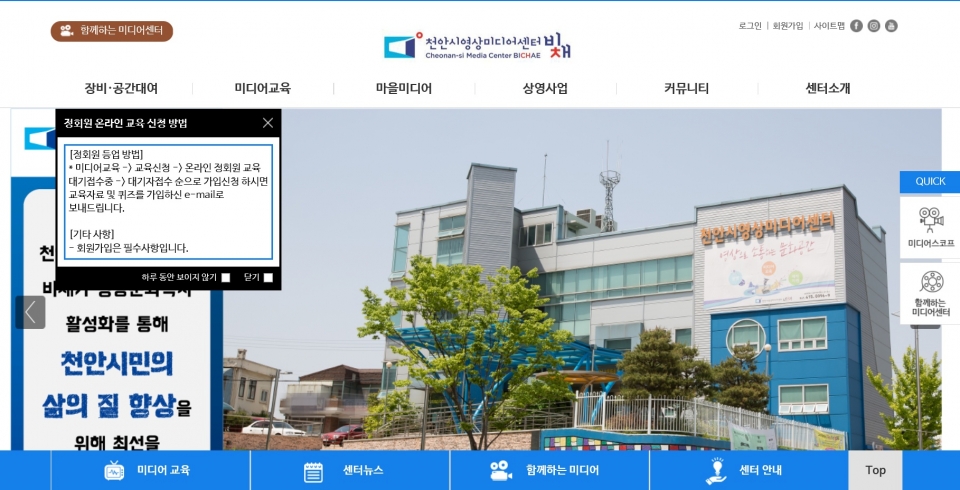 천안시 영상 미디어센터 홈페이지