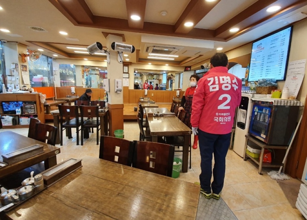 ▲ 코로나19에 따른 영등포 전통시장 내 텅빈 식당 안 모습(사진=김명수 예비후보자사무실 제공)