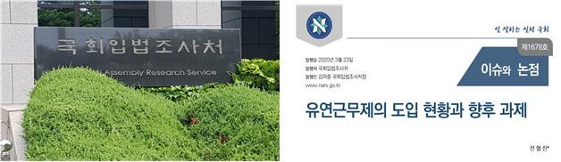<정치부=정완태 기자> 국회입법조사처(처장 김하중)는 2020년 3월 23일(월), 『유연근무제의 도입현황과 향후 과제』 라는 제목으로 코로나19 확산으로 주목받는 재택근무나 원격근무 등 유연근무제의 도입현황을 살펴보고, 유연근무제 확대를 위한 향후 과제를 제시한 「이슈와 논점」보고서를 발간하였다.