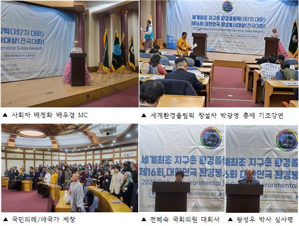 금번 행사는 언론사와 전혜숙 국회의원실이 공동 주최·주관하는 행사로 올해 16회째를 맞는 전통의 전국대회와 국제대회이다. 뿐만 아니라 지난 2020년 9월 26일 창설(박광영 총재)한 세계최초 지구촌 환경올림픽 창설대회는 벌써 7회째 대회를 맞고 있다.