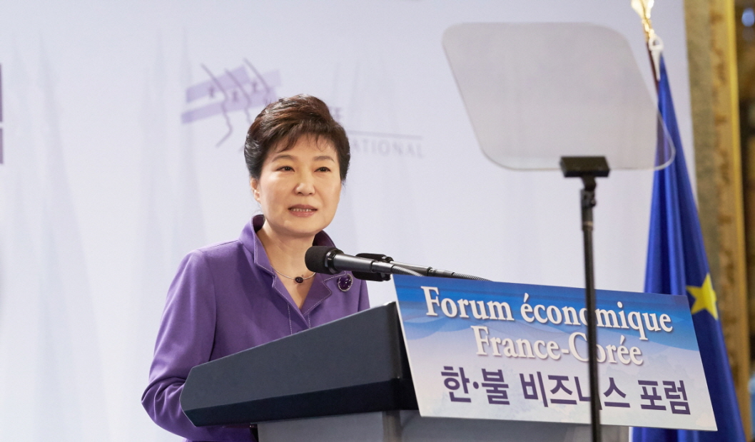 프랑스를 국빈방문 중인 박근혜 대통령은 2일(현지시간) 파리 시내의 한 호텔에서 열린 ‘한·불 비즈니스포럼’에 참석, 축사를 통해 “오늘 여러분들이 지혜를 모아 미래의 새로운 물결을 만들고, 그 물결 위에서 양국이 힘차게 번영의 바다로 나아가기를 기대한다”고 말했다.