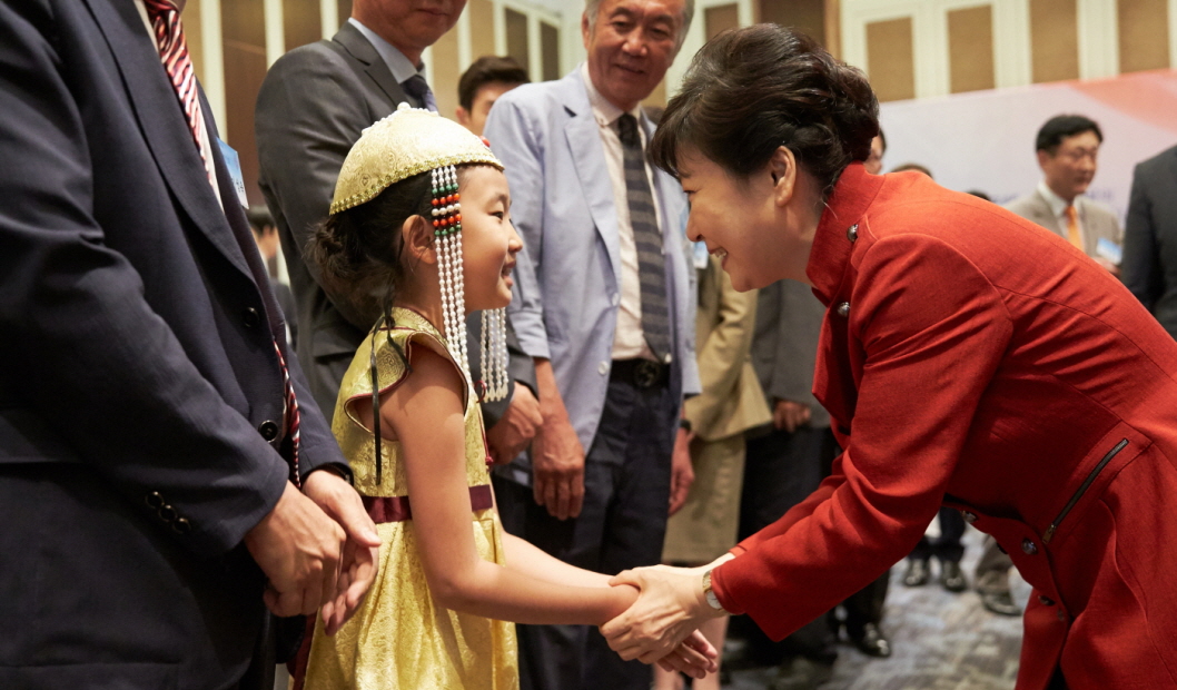 박근혜 대통령이 17일 오후 몽골 울란바타르 한 호텔에서 열린 동포간담회에 참석하고 있다.(사진=청와대)
