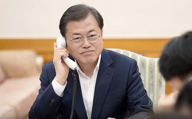 사진=문재인 대통령 통화 모습