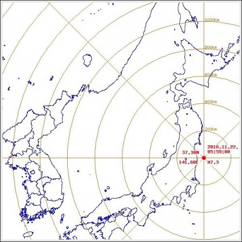 이날 지진으로 후쿠시마, 미야기(宮城) 현 등지에서 진도 4의 진동이 관측됐다.