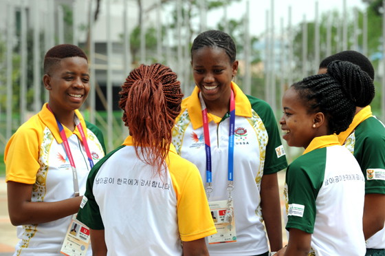 여자축구에 참가한 논코시 쥬 디스 트와이시(23)양은 “한국인들게 친근감을 표시하고 대회 준비에 고생한 분들께 감사의 마음을 전하고 싶었다”면서 활짝 웃었다.