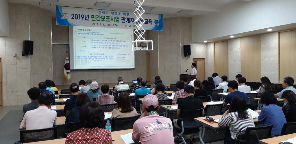 (내외매일뉴스/영남취재본부=김정숙 기자)  창녕군(군수 한정우)은 20일, 보건소 회의실에서 민간보조사업 관계자 80여 명을 대상으로 청렴도 향상과 전문성 및 능률성을 함양하기 위한 2019년 민간보조사업 관계자 실무교육을 실시했다고 밝혔다.