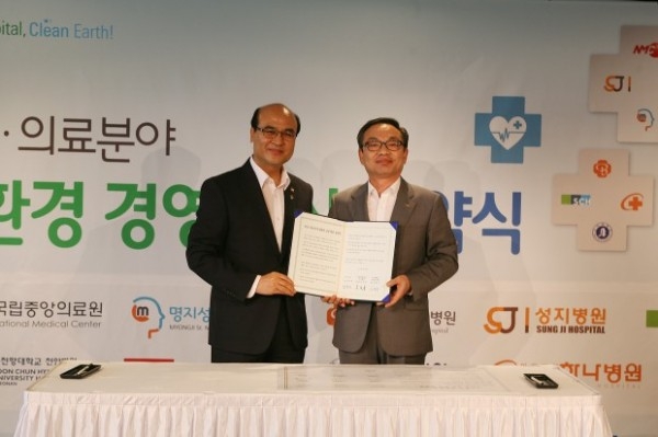 서울 플라자호텔에서 열린 협약식에는 이문수 병원장, 정연만 환경부 차관, 김용주 한국환경산업기술원 원장이 참석했다.