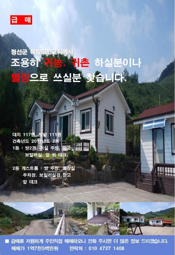 조용히 귀농 귀촌 하실분이나 별장으로 쓰실분 찾습니다.