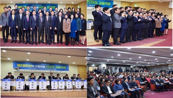<정치부=정완태 기자> 더불어민주당 윤관석 의원(남동을), 맹성규 의원(남동갑), 박찬대 의원(연수갑), 인천광역시는 12월 5일 수요일 오후 1시 30분 국회의원회관 제2소회의실에서 지역주민 포함 200명이 참석한 가운데 ⌜제2경인선 추진을 위한 토론회-제2경인선이 만들어낼 인천의 교통혁명⌟을 진행했다.