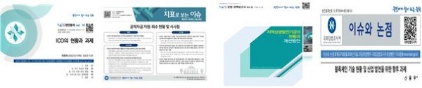 금융공정거래팀 원종현 입법조사관의 ICO의 현황과 과제에서는, 우리나라에서 ICO를 허용해야 할지에 대한 논란과 관련하여, ICO의 국내 현황을 점검하고, 문제점을 분석하여, 법률적 근거 마련을 비롯한 개선과제를 제시함.