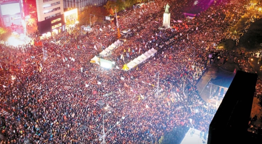 사진=박근혜 대통령 퇴진을 요구하는 2차 촛불집회가 지난 5일 서울 광화문 광장에서 열렸다. 5일 서울 광화문광장 촛불집회에 모인 인파는 광화문광장을 넘쳐 광화문 사거리 전 차선을…