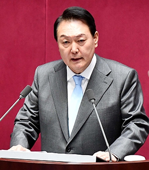 윤석열 대통령이 지난 16일 서울 여의도 국회에서 열린 본회의에서 코로나19 손실보상을 위한 추가경정예산안에 대한 시정연설을 하고 있다.