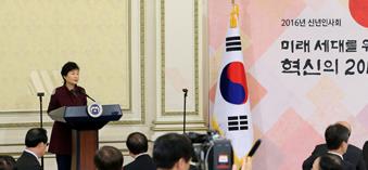 박 대통령은 올해 대내외적 경제 여건에 대해 “새해에도 우리 앞에 놓인 도전이 만만치가 않다. 세계 경제가 여전히 침체에서 벗어나지 못하고 있고, 특히 중국을 비롯한 신흥국 경제의 둔화가 우려스럽다”며 “청년일자리, 기업경쟁력 약화, 인구절벽 등 당장 우리가 극복해야할 내부과제들도 산적해 있고 한반도를 둘러싼 외교안보 정세 역시 잠시도 마음을 놓기 어려운 것이 사실”이라고 설명했다.