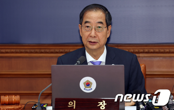 한덕수 국무총리가 4일 오전 서울 종로구 세종대로 정부서울청사에서 열린 국무회의에서 모두 발언을 하고 있다.<사진=뉴스1>