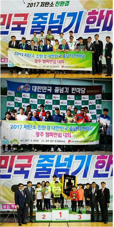 저탄소친환경 2017 제2회 대한민국줄넘기한마당 광주챔피언쉽 대회에서 종합우승 1위 친무D J줄넘기클럽(지도자 김대건), 호연줄넘기클럽(지도자 노병호), 3위 그린줄넘기클럽(지도자 김재원)에서 수상하였다.